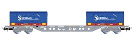 hj6303 copy JOUEF HJ6303 SNCF, 4-axle 60' container wagon Novatrans Sgss, grey, 2 x 20' container Spedirail blue, ep. V