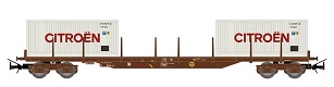 hj6310 copy JOUEF HJ6310 SNCF, 4-axle stake wagon, Rs type with 2 x 20' container Citroen, white, ep. IV