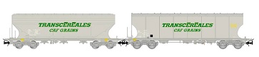 hj6313 copy JOUEF HJ6313 SNCF, 2-unit pack cereal hopper wagons Transcéréales – CAF Grains, flat + rounded walls, ep.IV-V