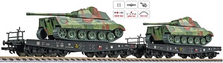 lil230173 copy LILIPUT 230173 2-tlg. Set, Flachwagen, DRG, beladen mit Panzern, Ep.II