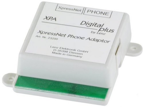 The XPA is a small box with two RS11 ports. One port is used to connect the XPA to your XpressNet. The other port is used to connect the XPA to any device that uses standard tones such as a cordless phone. The XPA translates the standard tones produces by the phone into a series of XpressNet commands which allows you to have full control of your trains from a cordless phone. One XPA is needed for each wireless device desired. Up to 30 XPAs can be used on an XPressNet based system. Set-01 can support 30, Set-02 can support 5 and the Compact/Commander can support 6. Please note that device (phone) used with the XPA is dedicated for this purpose and while plugged into the XPA, it can not be plugged into the phone system. The range of XPA is based on the capabilities of the specific cordless phone selected. It does not matter if the phone is an older phone or one of the latest models. There are several hundred choices available. Chose the one that is the easiest for you to use and has the range and battery life desired. The feel in your hand is the most important aspect and since all our hands are different one choice will not be best for all. We have found that a the lowest cost 900MHz phone has more than enough range for most layouts. We have used an extended 900MHZ on our outdoor layout and for ultimate range a 2.4 GHZ phone works great. Some of our favorite ones are shown on our WWW site. Feature set. 1) Ability to select any locomotive address (the address range is determined by the capabilities of your command station) 2) Speed and direction control 3) F0-F8 (momentary if the command station supports the feature) (the number of functions available is determined by the capabilities of your command station) 4) Turnout Control 5) Macros (if supported by the phone selected) 6) Ability to customize several options The keys work as follows 3 - speed up one speed step with each press 6 - speed up multiple speed step with each press 9 - speed up quickly with each press 1 - slow down one speed step with each press 4 -slow down multiple speed step with each press 7- slow down quickly with each press 2 - forward 5 - stop 8 - reverse 0 - emergency stop (can be customized) # and * are used for special functions. For example # 6 1 1 * assigns locomotive 611 to the handheld. * 7 activates function 7