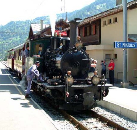 Since 1891 there have been trains travelling between Visp and Zermatt. In the early years, the railway company was known as VZ, later extending to Brig, and known as the BVZ. In January 2003 the BVZ merged with the Furka-Oberalp-Bahn to form the Matterhorn Gotthard Bahn. The steam loco, “Breithorn” originates from the early years of the VZ, long before the electrification of this interesting narrow gauge railway line, that makes use of the “Abt” rack and pinion system in some locations. On a couple of occasions a year, the Breithorn, that has been modified to oil consumption instead of coal, makes a run from Brig to Zermatt with an option to travel from Zermatt to Findelbach, the first stop on the Gornergrat Bahn. In the first part of the film we follow train on its journey to Täsch including spectacular shots of parallel running with the locomotive. In Kalpetran we witness an unusual shunting procedure using the siding. From Täsch we take our place in the open air wagon, and with two cameras we show you the spectuacular surroundings whilst you enjoy the lovely sound of this little 4 cylinder steamer. Then finally, up the Gornergratbahn to Findelbach station. Again a sound to remember with close-ups of the loco, and some unforgettable views over Zermatt with a clear and sunny Matterhorn. Running time: 58 minutes. REOS production. NTSC USA/CANADA/JAPAN standard.