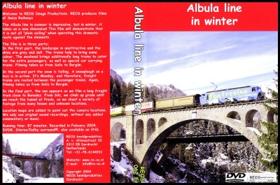 The Albula line in summer is impressive, but in winter, it takes on a new dimension! This film will demonstrate that it is not all "plain sailing" when operating this dramatic route against the elements. The film is in three parts; In the first part, the landscape in unattractive and the skies are grey and dull. The trains help to bring some colour. The weekend brings additionally long trains to cater for the extra passengers, as well as special car carrying trains. Filming takes us from Solis to Bergün. In the second part the snow is falling. A xlocox snowplough is in action. Itxs Monday, and therefore, freight trains are routed between the passenger trains. Again, filming takes us from Solis to Bergün. In the final part, the sun appears as we film a long freight train close to Bonaduz. From Sils, we climb up grade until we reach the tunnel at Preda, as we shoot a variety of footage from many known and unknown locations. Maps are added to point out the camera locations. We only use original sound recordings, without any added commentary or music. Running time: 87 minutes. REOS production. NTSC USA/CANADA/JAPAN standard.