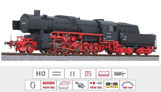 (HO scale) Schlepptenderlok BR 42 1746, DR, Ep.II