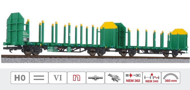 (HO scale) Rungenwagen-Einheit Laaps 565 für Holztransport, VTG Deutschland, Ep.VI
