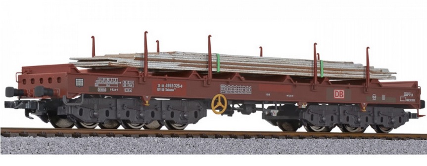 (HO scale) 6-achs.Coiltransportw., Sahmms 711, 31 80 486 8 008-1, Ladung Stahlplatten, DB AG, Ep.V, braun, gealtert