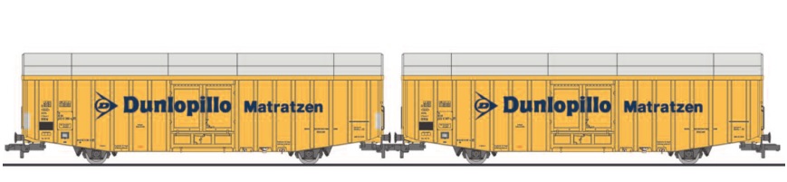 (HO scale) 2-tlg. Set großräumiger Güterwagen, Hbbks, DB, Dunlopillo, Ep.IV (mittel)