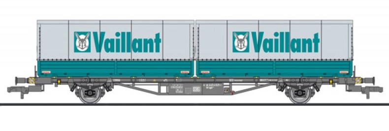 (HO scale) 235223 Containertragwagen, DB, Lgjs 571.1, 440 4 621-0, mit 2 Wechselpritschen Vaillant, Ep.IV