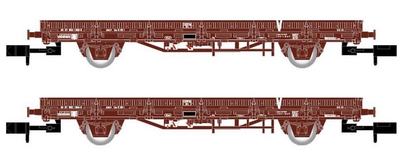 (N scale) HN6543 SNCF 2-unit set flat wagons V loaded with concrete sleepers period V