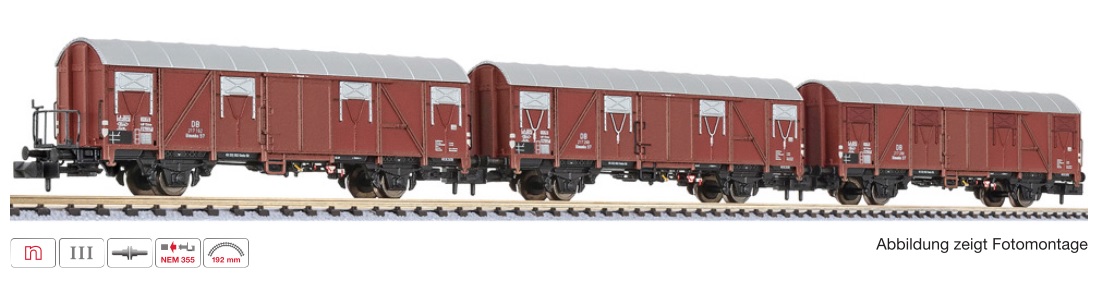 LILIPUT 260131 3-tlg. Set, ged. Güterwg., Glmmhs 57, DB, Ep.III, 1x mit Bühne, 2x ohne Bühne