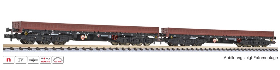 (N scale) 2-tlg. Set, 6-achs. Schwerlastwg., DR, Sas 4850, braun/schwarz/schwarz, Ursprungsausf., Ep.IV.