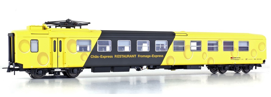 (HO scale) LSMODELS 47263 EW I, yellow, green band, cheese livery, new logo, Restaurant Chäs-Express inscription / Ep. IV-V / SBB / HO / DC / 1 P.