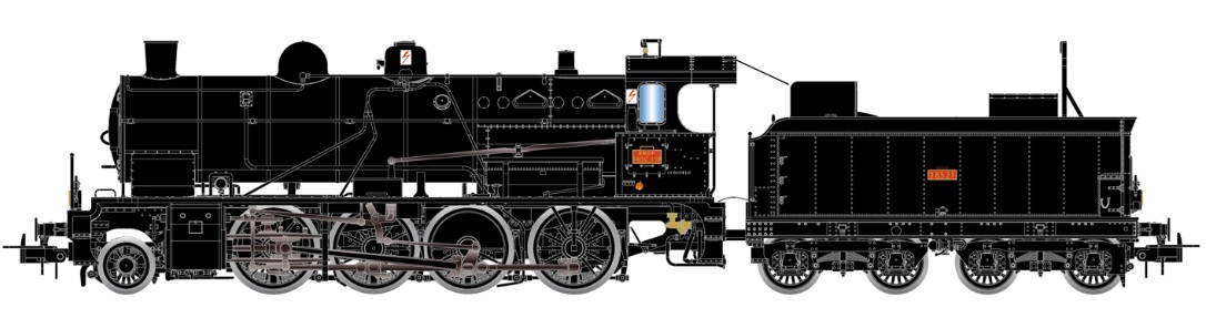 (HO scale) HJ2416S SNCF 140 C 158 tender 18 C 521 région Ouest black livery ep III with DCC sound decoder