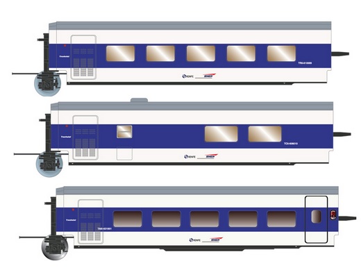 (N scale) HN4356 SNCF-RENFE 3-unit set Talgo Francisco de Goya Paris – Madrid blue and white livery restaurant bar su