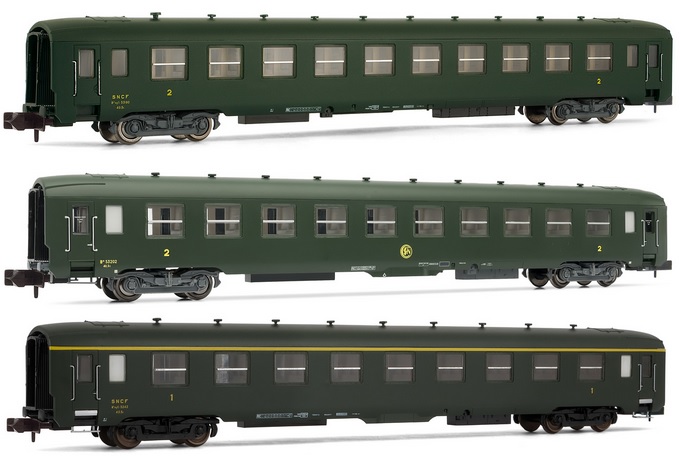 (N scale) HN4383 SNCF 3-unit pack DEV AO coaches A9 2 x B10 green ep I