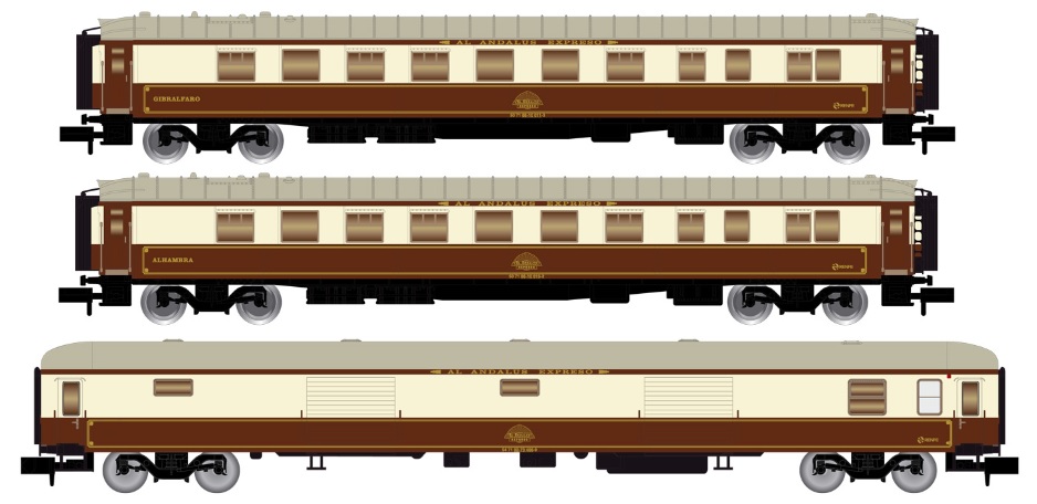 (N scale) HN4396 RENFE 3-unit set Al-Andalus 2xWR restaurants DD-8100 period