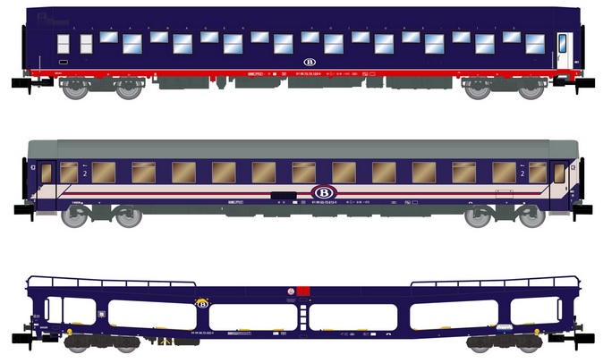(N scale) HN4406 SNCB 3-unit set T2 + DDm + Bc I6 UIC-Z blue and red livery