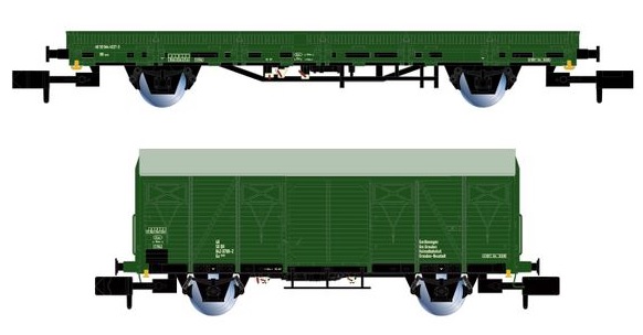ARNOLD HN6567 DR, 2-unit pack maintenance wagons (1 x Gs-wooden + 1 x Kls), green livery, period IV
