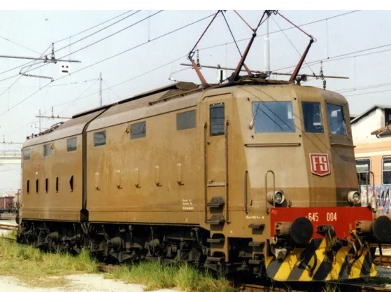 (HO scale) HR2935 FS, 6-axle electric locomotive E.645 1st series, isabella livery, simplified FS logo red, pantographs 52, ep. V