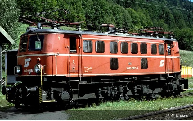 RIVAROSSI HR2940 ÖBB, electric locomotive 1040 007-5, new lateral air vents, vermillion livery with three decoration lines, low roof, steps on front, ep. V