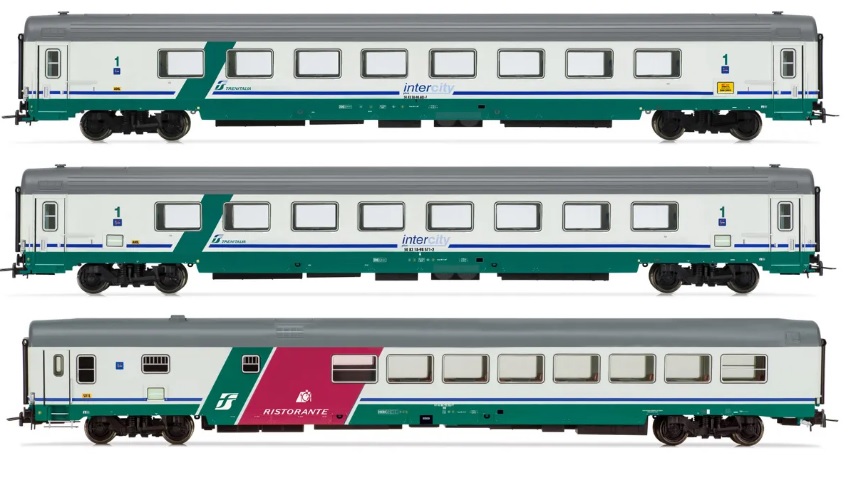 RIVAROSSI HR4359 FS, 3-unit pack IC 507/530 Sila Torino-Reggio C., 2x Gran Confort 1985 open space + restaurant GC WR83 smooth roof, XMPR Intercity Plus livery, ep. Vb