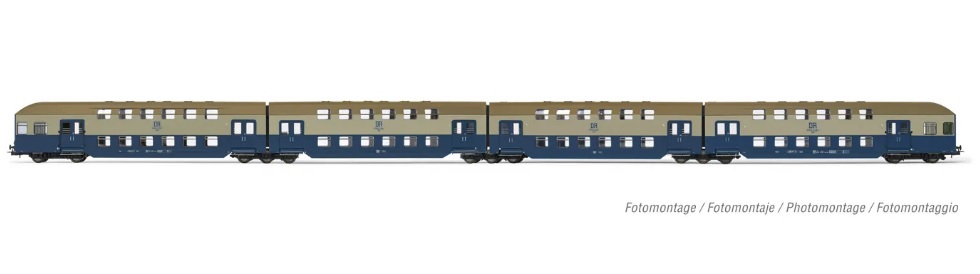 (HO scale) HR4371 DR 4-unit double decker coach without control cabin blue