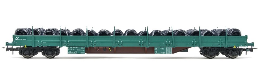 (HO scale) HR6553 FS, 4-axle stake wagon wagon type Res, green livery, loaded with wire coils, ep. VI