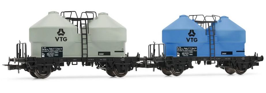 RIVAROSSI HR6592 DR-Miet, 2-unit pack of 2-axle silo wagon Ucs, grey and blue livery VTG, ep.e IV