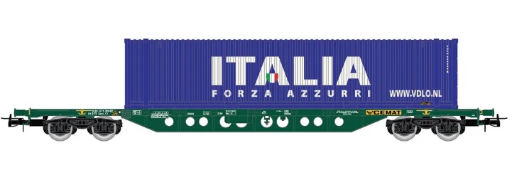 RIVAROSSI HR6617 FS CEMAT, container wagon type Sgns, green livery, with container 45' ITALIA, ep. V-VI