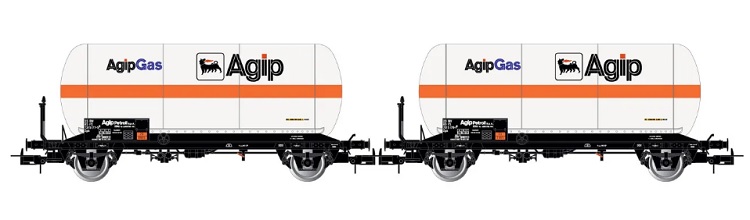 (HO scale) HR6620 FS, 2-unit pack 2-axle gas tank wagons, white with orange stripe, Agipgas, ep. IV