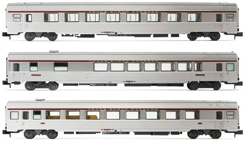 ARNOLD HN4440 SNCF, 3-unit pack TEE Cisalpin (Milan – Paris), pack 1/2 Vru + A3rtu + A8u, silver livery, ep. IV