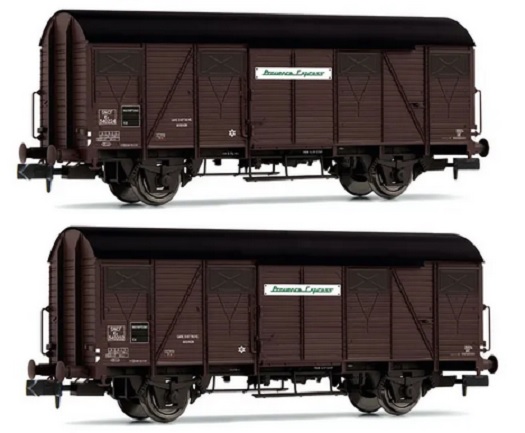 ARNOLD HN6571 SNCF Provence Express, 2-unit pack covered 2-axle wagons type Kv (wooden walls), ep. III
