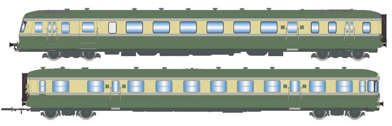 JOUEF HJ2418S SNCF RGP II X2700 diesel railcar with XR7700 trailer green.