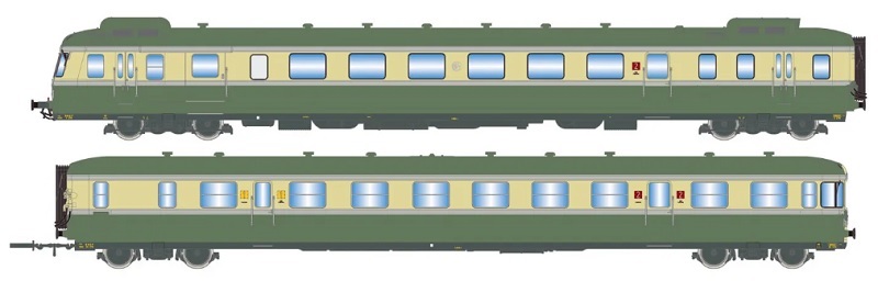 JOUEF HJ2419S SNCF RGP II X2700 diesel railcar with XR7700 trailer green.