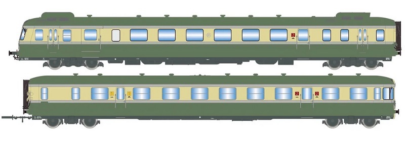 JOUEF HJ2429S SNCF RGP II X2700 diesel railcar with XR7700 trailer Green.
