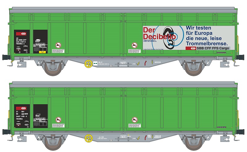 (N scale) 2er Set Schiebewandwagen Hbbillns-x SBB, Ep.V, Decibello.