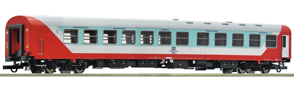 (HO scale) ROCO 6200014 Dining coach, PKP era: IV. DC. delivery date: Q4/2023. Length over buffers: 303mm. Minimum radius: mm.