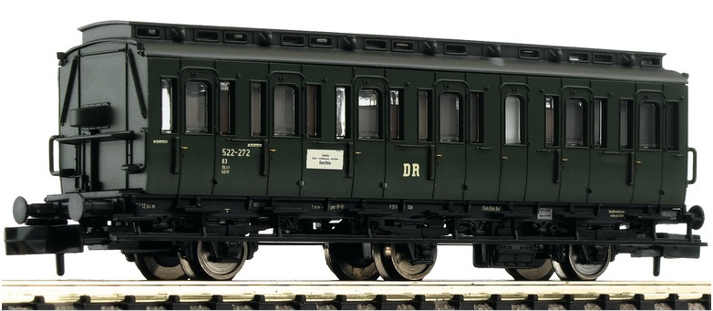 (N scale) FLEISCHMANN 6260008 Compartment coach 2nd class, DR era: III. DC. Length over buffers: 79mm. Minimum radius: mm. Delivery date: Q4/2023.