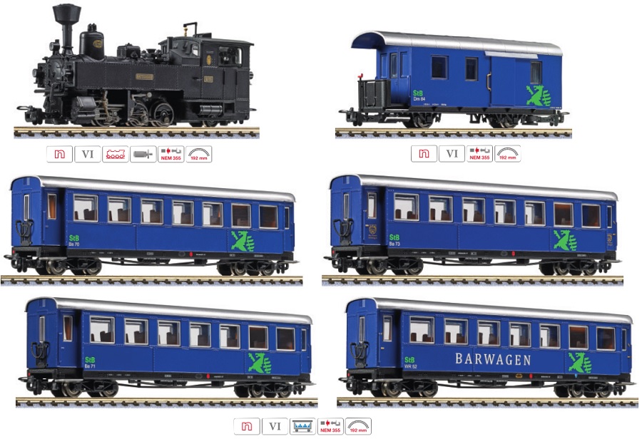 LILIPUT 140910 6-tlg. Zugset Murtalbahn, 1 Dampflok und 5 Wagen, Ep.VI