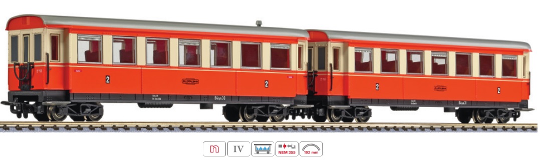 LILIPUT 340508 2-tlg. Set, 4-achs. Personenw., B4ip/s 30 und 31, rot-creme, ZB, Ep.IV