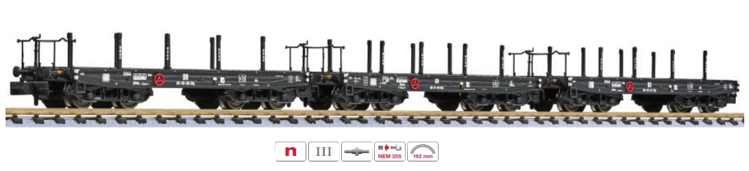 (N scale) 3-tlg. Set, 4-achs. Schwerlastwagen, SSy 65-50, DR, Ep.III.