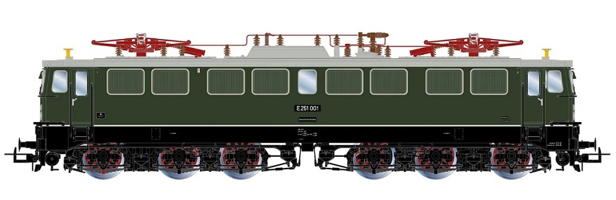 (HO scale) HR2941S DR, 6-axle electric locomotive E251 001, green livery with black bogies, ep. III, with DCC sound decoder