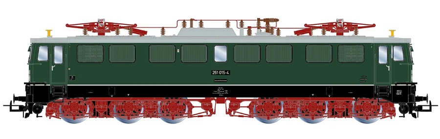 (HO scale) HR2942 DR, 6-axle electric locomotive 251 015-4, green livery with red bogies, ep. IV