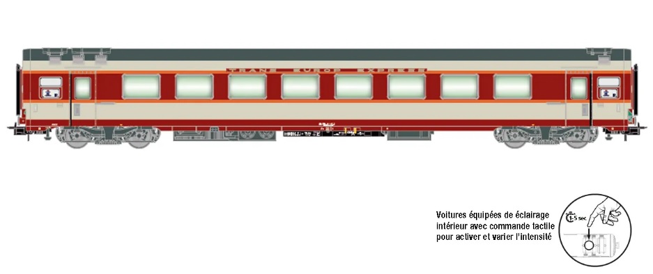 (HO scale) HJ4193 SNCF, additional Gran Confort coaches A8u for TEE Le Kléber, betón grey, ep. IV. Factory installed interior lighting, exact interior fittings.