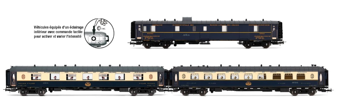 (HO scale) HJ4198 CIWL, 3-unit pack Etoile du Nord, set 1/2 (DD3, VP Côte d´Azur + VPC Étoile du Nord), ep. II. Factory installed interior lighting, exact interior fittings.