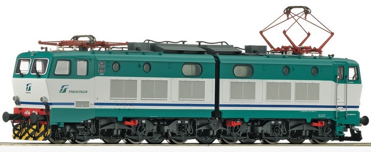 (HO scale) ROCO 7510058 Electric locomotive E.656.009, FS, Ep. V, DCC, Fitted with sound?: yes, Digital interface: Plux16, Additional light functions: no, Length over buffers: 210, Minimum radius: 358 mm.