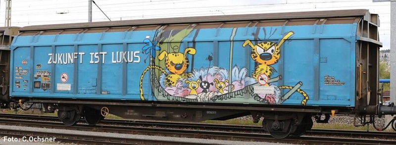 KATO HOBBYTRAIN LEMKE H24666 Schiebewandwagen Hbbillns SBB, Ep.VI, Graffiti-Serie (4)