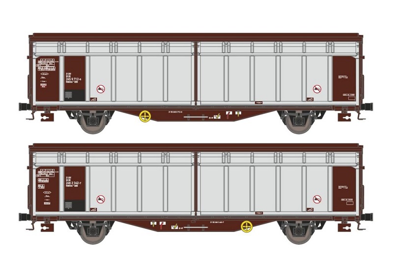 (N scale) H24653 2er Set Schiebewandwagen Hbbillns DR, Ep.IV-V