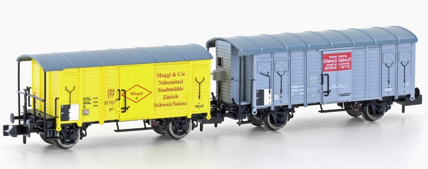 (N scale) H24255 2er Set gedeckte Güterwagen K2 + K3 SBB, EP.II