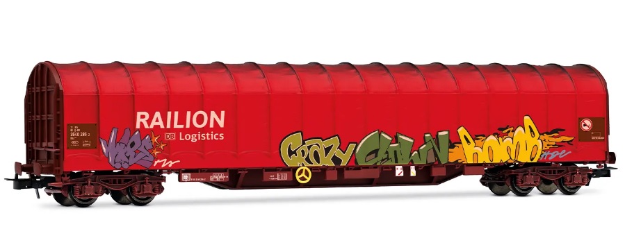 (HO scale) HR6680 DB AG, 4-axle tarpaulin wagon Rils type, red livery RAILION DB LOGISTICS with graffiti, ep. V-VI